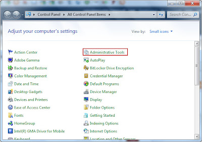 1. Open “Control Panel” and Select “Administrative Tools”. You can find it by changing the View to “Small icons or Large icons”.