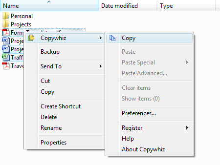 destination folder and Select “Paste” instead of “Copy” option from the “Copywhiz” listas shown in the below screen shot.